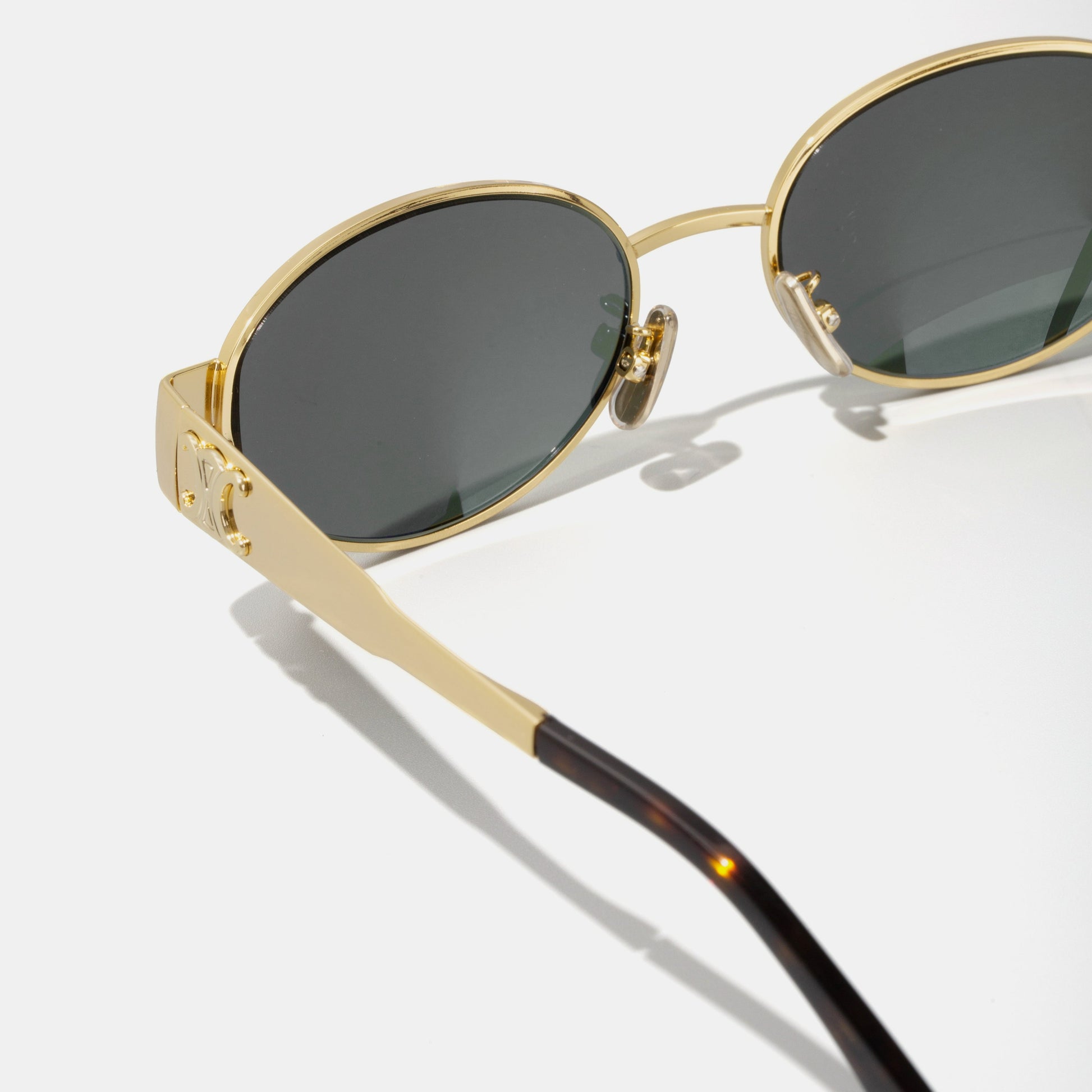 CELINE TRIOMPHE METAL 01 Oval Gold/Green Sunglasses CL40235