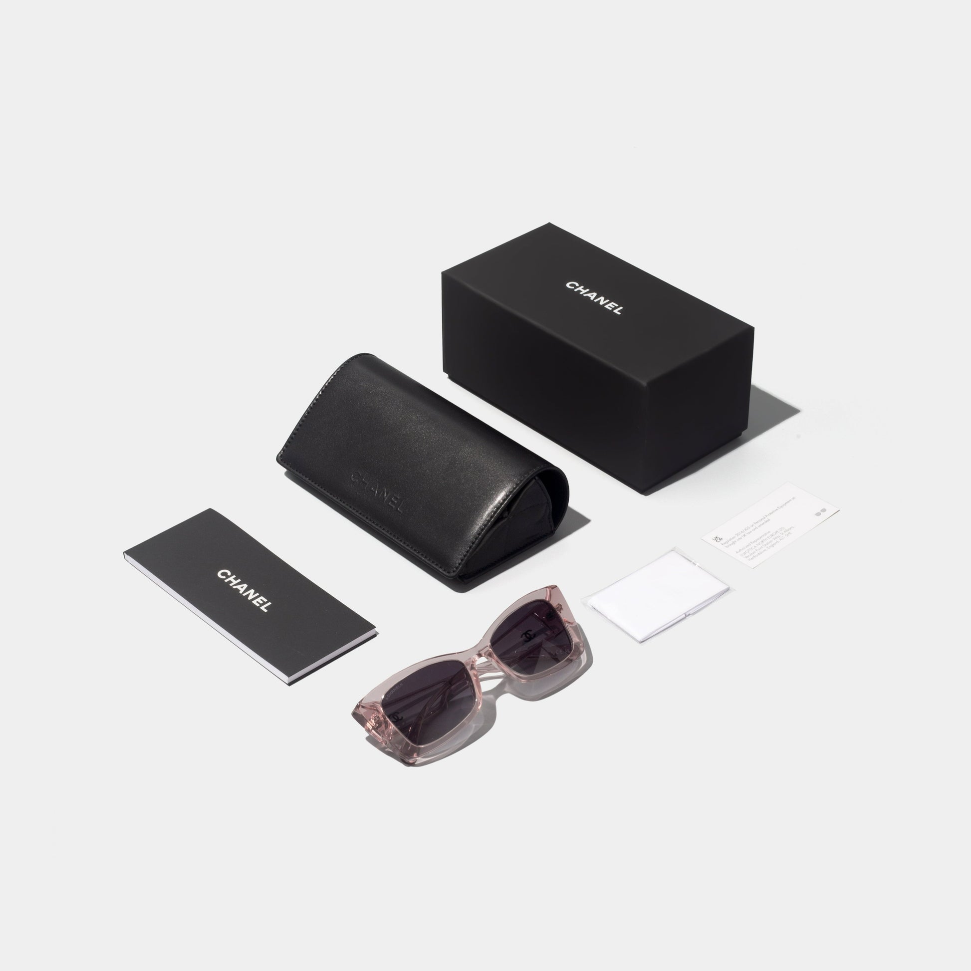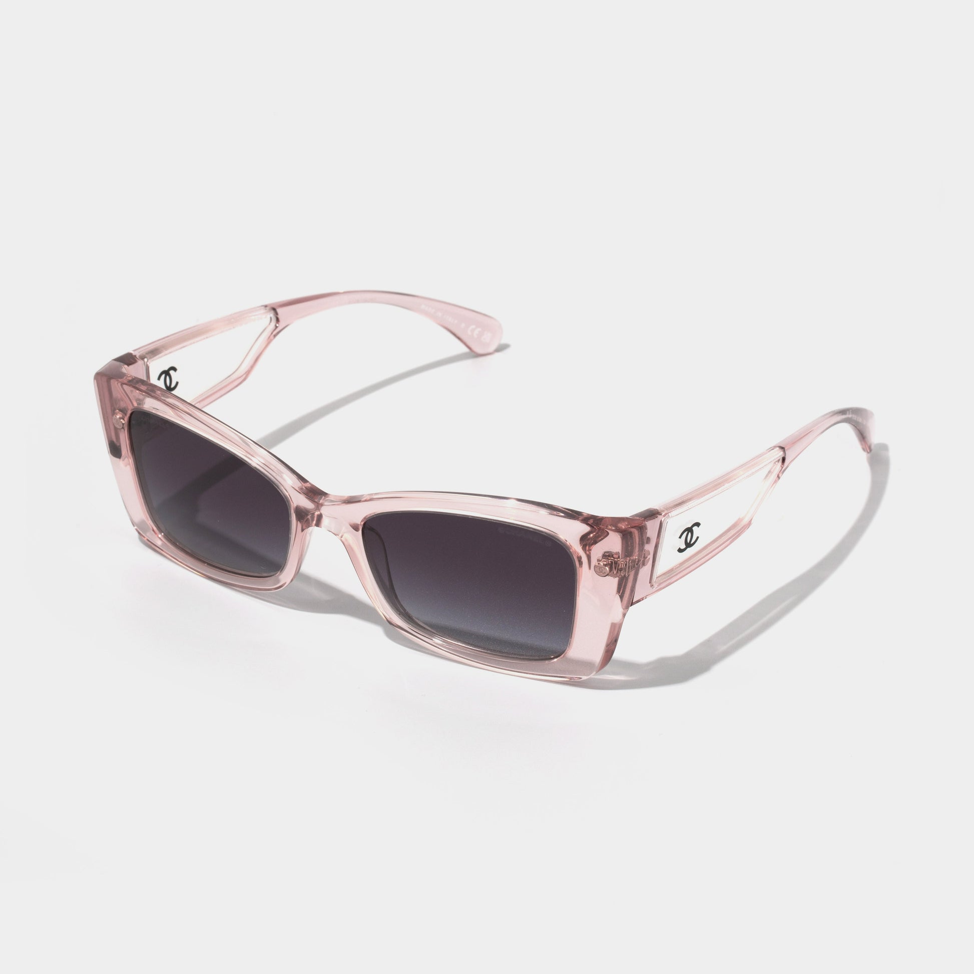 CHANEL矩形透明粉红色太阳眼镜CH5430