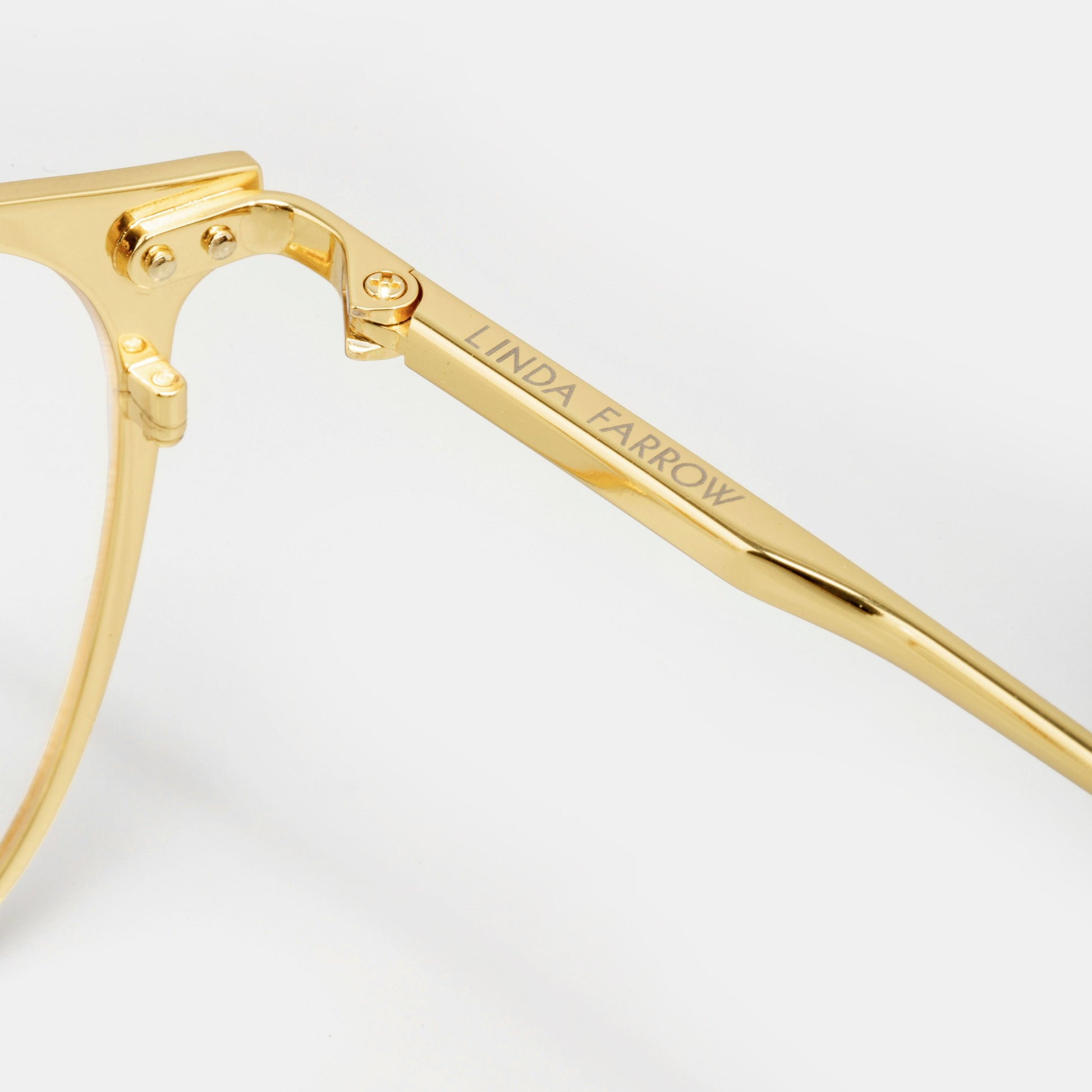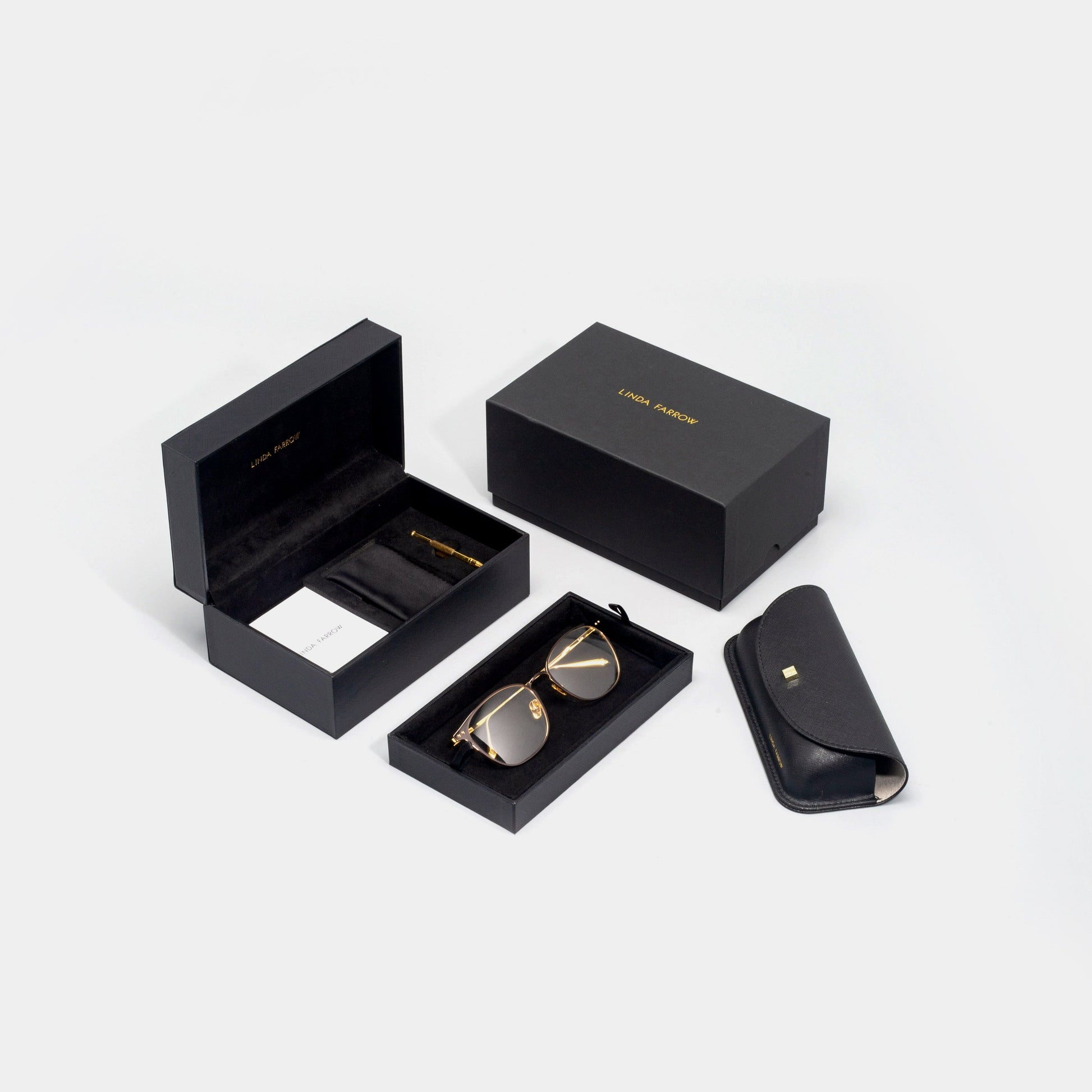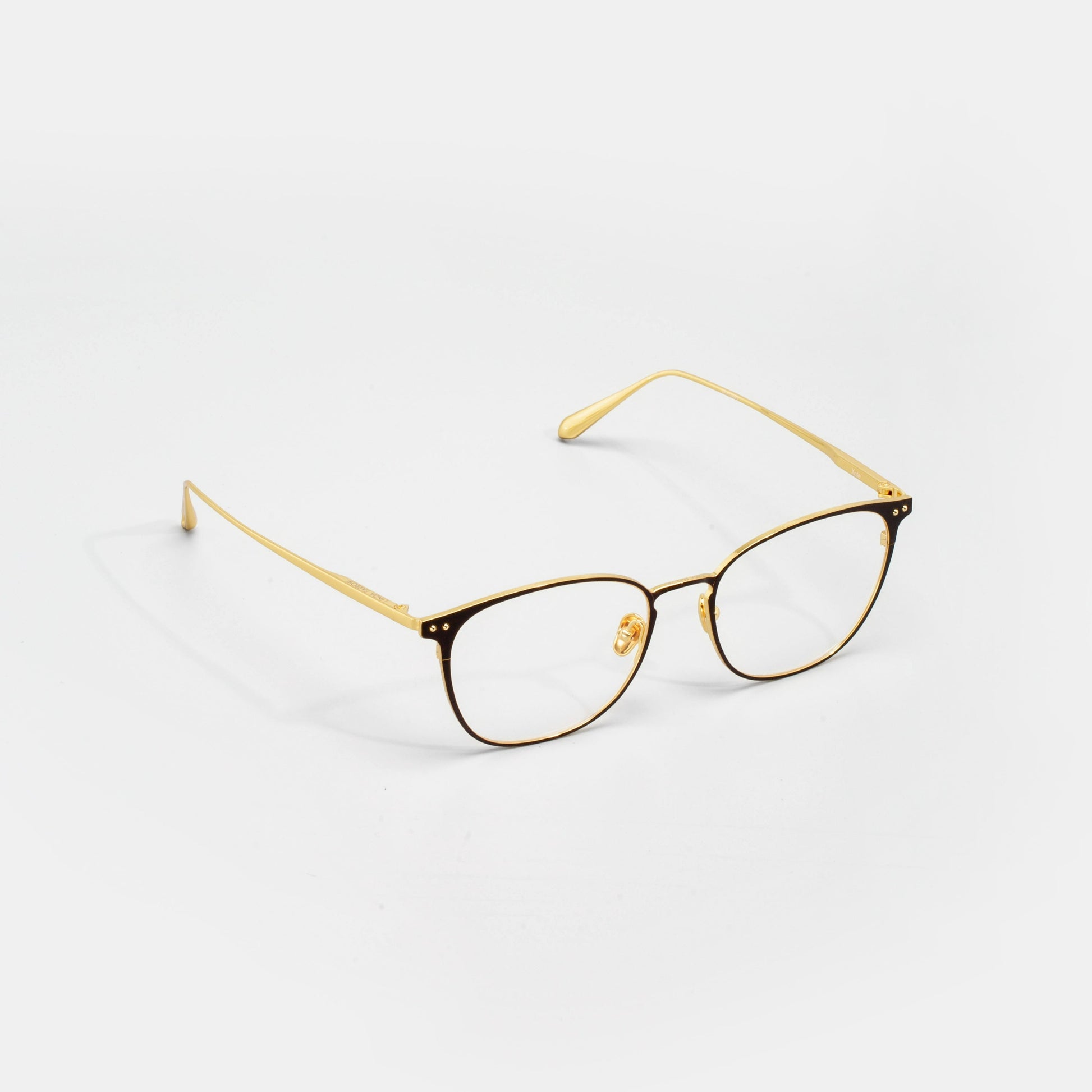 这款光学眼镜很好地考虑到了对比度的使用。LINDA FARROW的矩形眼镜由纯22克拉镀金的日本钛金属铸成。正面是纯手绘的黑色漆面,内部镀金闪闪发光。鼻梁处的微妙徽标细节过渡到可调节鼻托,方便佩戴者调整贴合度,保证长时间的舒适佩戴感。