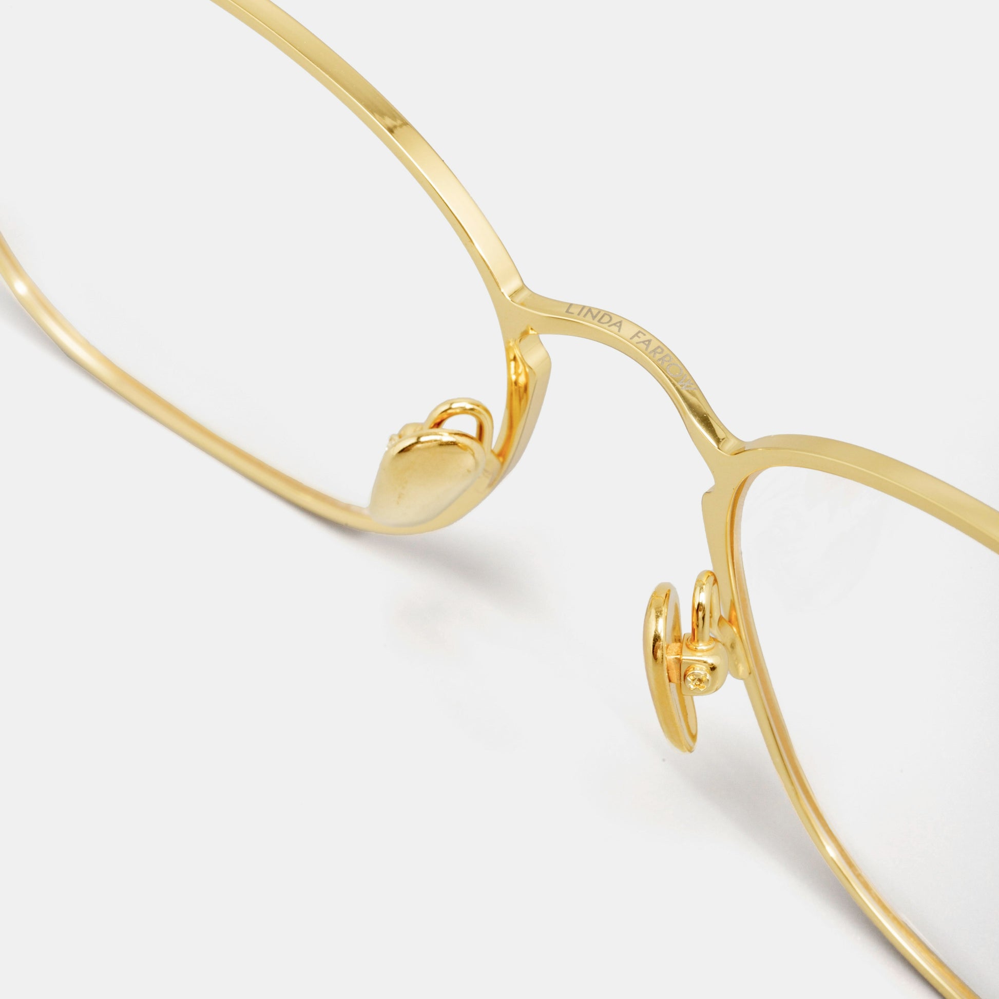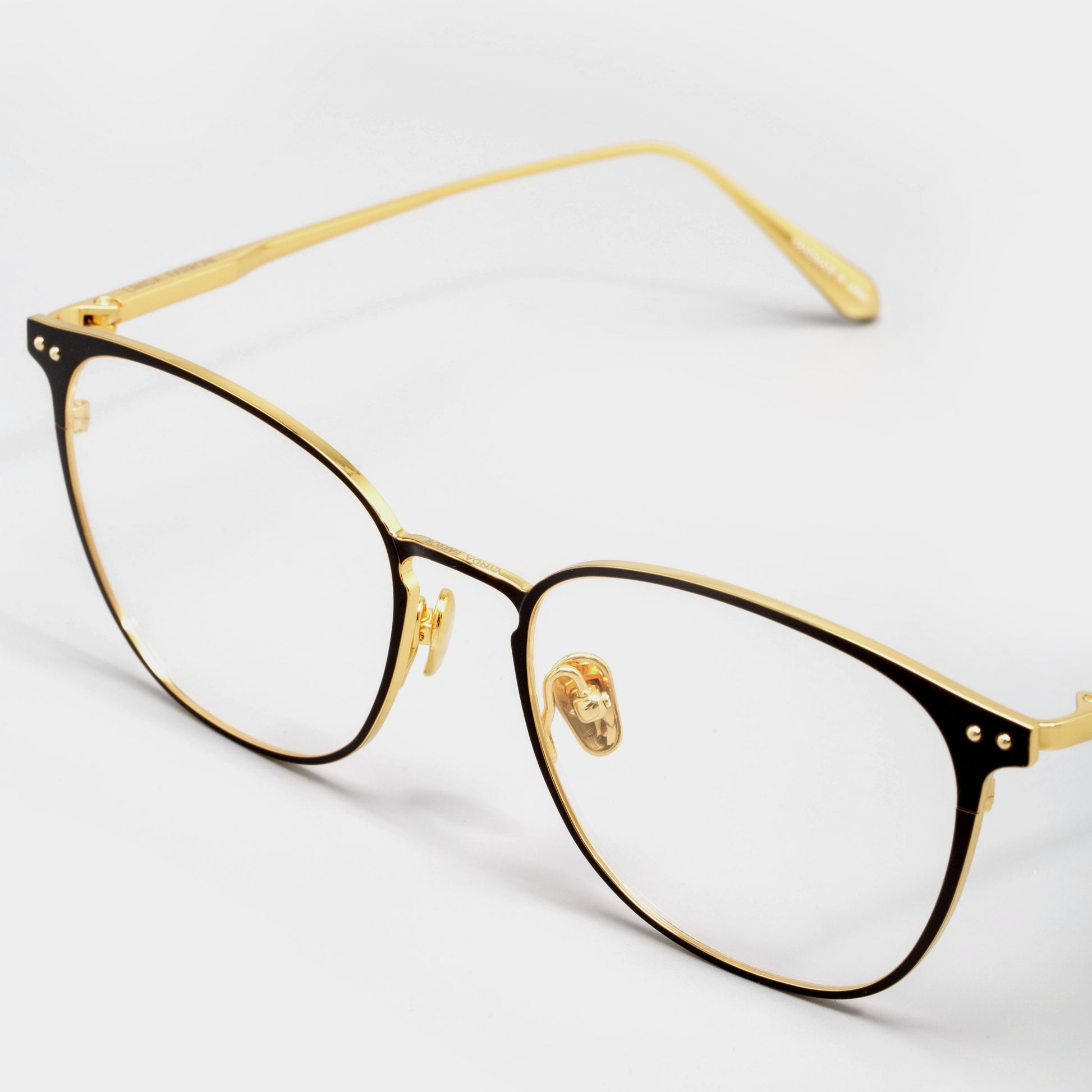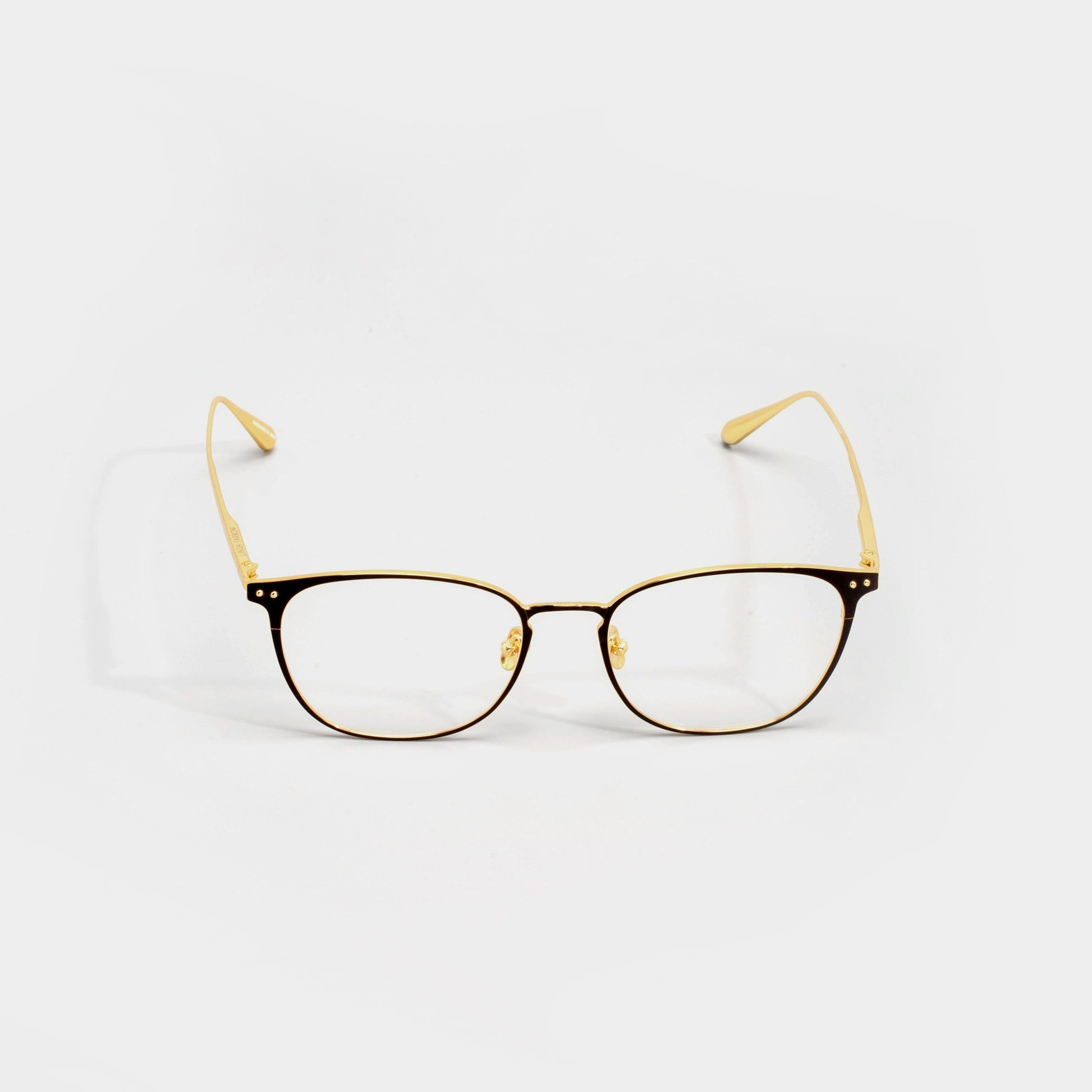 这款光学眼镜很好地考虑到了对比度的使用。LINDA FARROW的矩形眼镜由纯22克拉镀金的日本钛金属铸成。正面是纯手绘的黑色漆面,内部镀金闪闪发光。鼻梁处的微妙徽标细节过渡到可调节鼻托,方便佩戴者调整贴合度,保证长时间的舒适佩戴感。