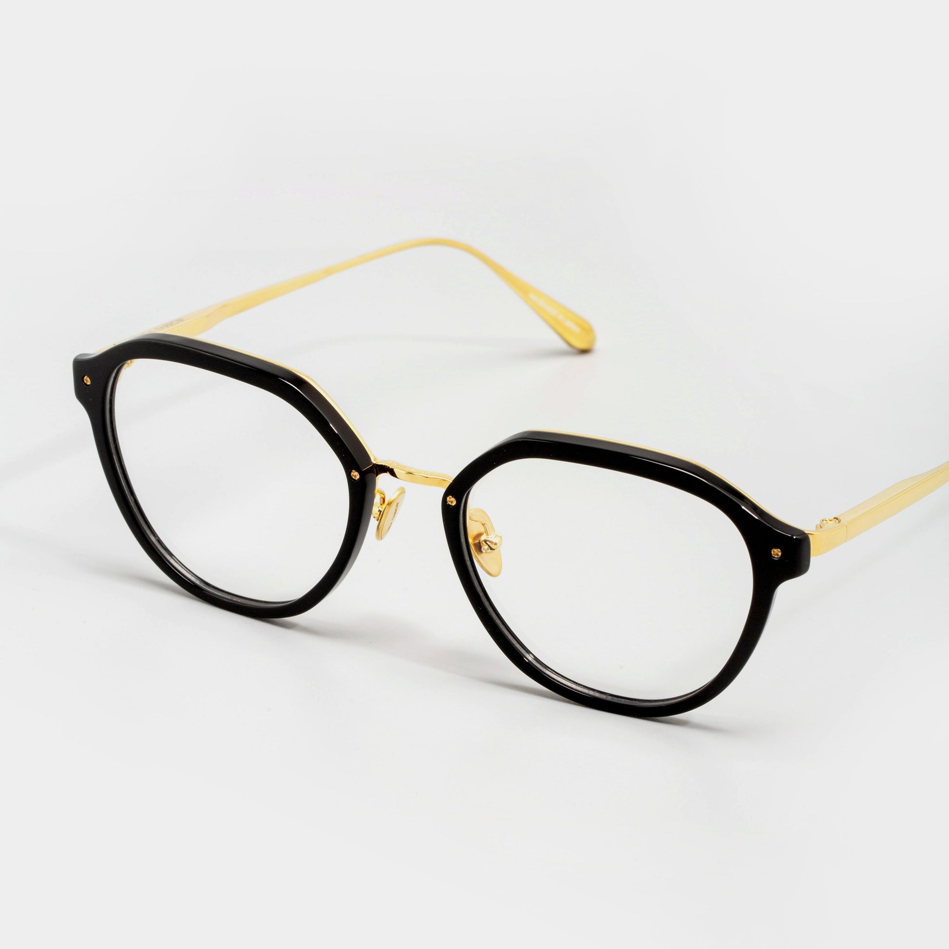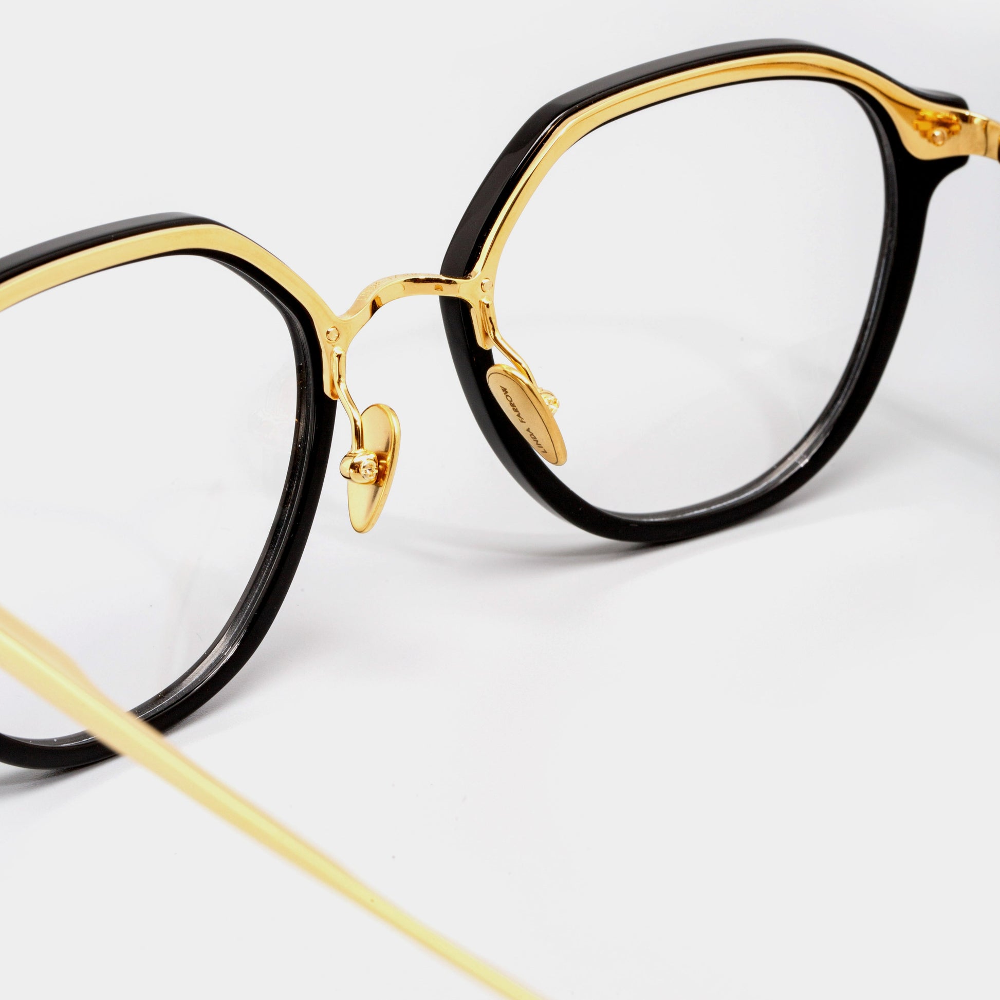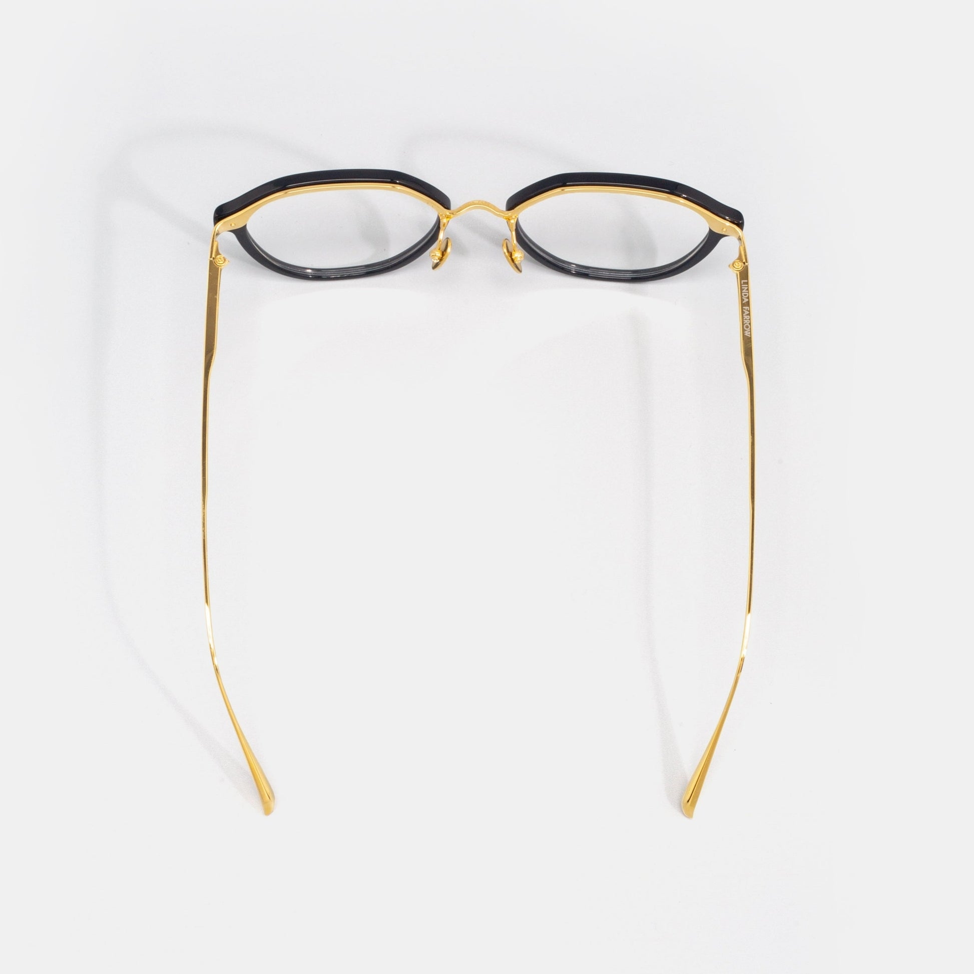 根植于品牌标志性设计语言,Cacao光学镜架将抛光醋酸纤维和光滑的钛金属结合,自成一种高级感。这款LINDA FARROW眼镜由可回收的黑色醋酸纤维雕刻而成,镶嵌在外露的22克拉镀金钛合金框架上,沿着眉毛内侧,过渡到锥形镜腿。可调节的鼻托设计方便佩戴者调整贴合度,保证长时间的舒适佩戴感。
